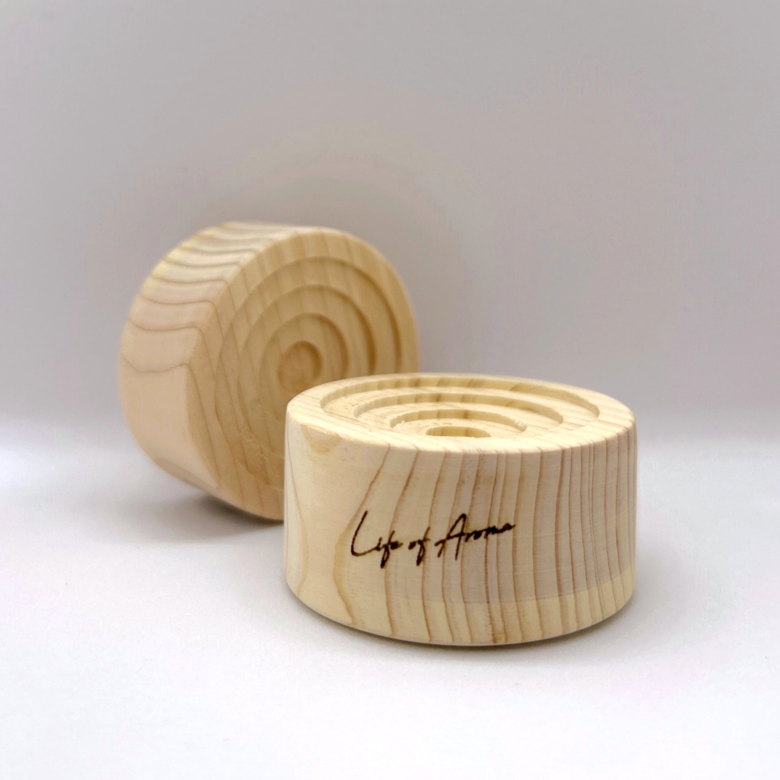ウッドブロックに2、3滴エッセンシャルオイルを垂らし香りをお楽しみください。